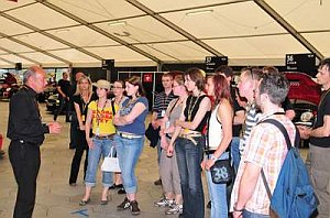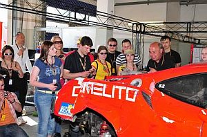 An der Rennstrecke in Oschersleben konnten die jungen Fachkräfte die Rennen nicht nur von der Tribüne aus beobachten, sondern durften auch intensiv hinter die Kulissen der Rennserien schauen, deren Fahrer an diesem Wochenende in Sachsen-Anhalt ihre Runden drehten. Mit der Veranstaltung erkennen ZDK und Vogel Auto Medien inzwischen schon traditionell die erfolgreiche Bilanz der Nachwuchselite an. Deshalb stand in der Motorsport Arena Oschersleben der Spaß am Auto und am Motorsport im Vordergrund. Konzentriert arbeiten mussten in erster Linie die Mechaniker in den Rennteams. Hans Niemann, einer der Väter und Organisator der ADAC Procar, begleitete die Gruppe das ganze Wochenende und öffnete ihr die Türen in die Welt des Motorsports. Alle Teilnehmer durften selbst in einem Team mitarbeiten und hautnah erleben, welche Hektik entsteht, wenn kurz vor dem Qualifying am Fahrzeug noch einmal etwas verändert werden muss. Auch sahen sie, wie die Mechaniker in der Reparaturpause zwischen den beiden Rennen der Procar-Serie die bei Crashs demolierten Fahrzeuge wieder rennfertig machten. Es gab außerdem genug Zeit, die Teams mit Fragen zu löchern und über die Technik der Rennboliden zu fachsimpeln. Sebastian Jähn, Landessieger aus Sachsen und Patrick Hiemer, Landessieger aus Bayern, hatten beispielsweise Gelegenheit, sich bei ATM Racing mit der Arbeit einer Boxencrew vertraut zu machen.