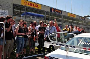 Doch die Teilnehmer des Anerkennungswochenendes lernten in Oschersleben nicht nur die Teams und die Boxengasse kennen. Sie waren auch auf der Start- und Zielgeraden dabei, als die Rennboliden der Procar-Serie in der Startaufstellung standen und Techniker noch ihre letzten Einstellungen vornahmen. Weil sie aus den Boxen heraus nur wenige spektakuläre Fahrmanöver beobachten konnten, hatten sie ausreichend Zeit, sich das ein oder andere Rennen von den Zuschauerplätzen aus anzusehen.